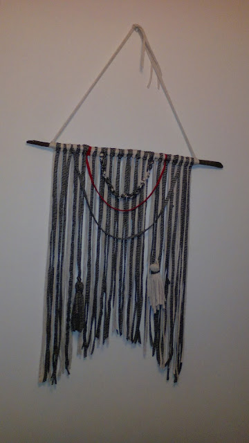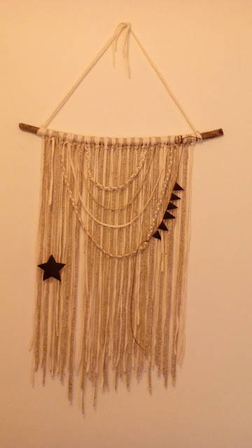 Um destes dias ( chovia torrencialmente) passei por uma zona com imensos paus espalhados...escolhi os piores ( é normal em mim...quem muito escolhe pouco acerta!) , comprei trapilho e sairam estes dois penduricalhos ( é o unico nome que me lembro quando vejo destas coisas)